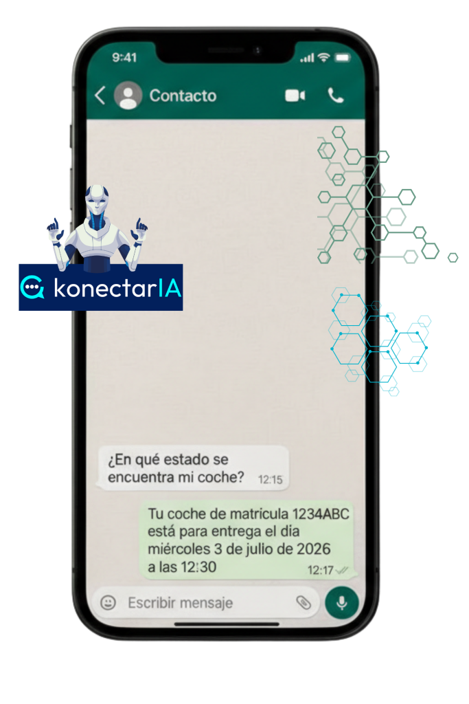 Esta función permite que KonectarIA ponga a disposición, en tu propio número de WhatsApp, el acceso a los datos de todos los vehículos.