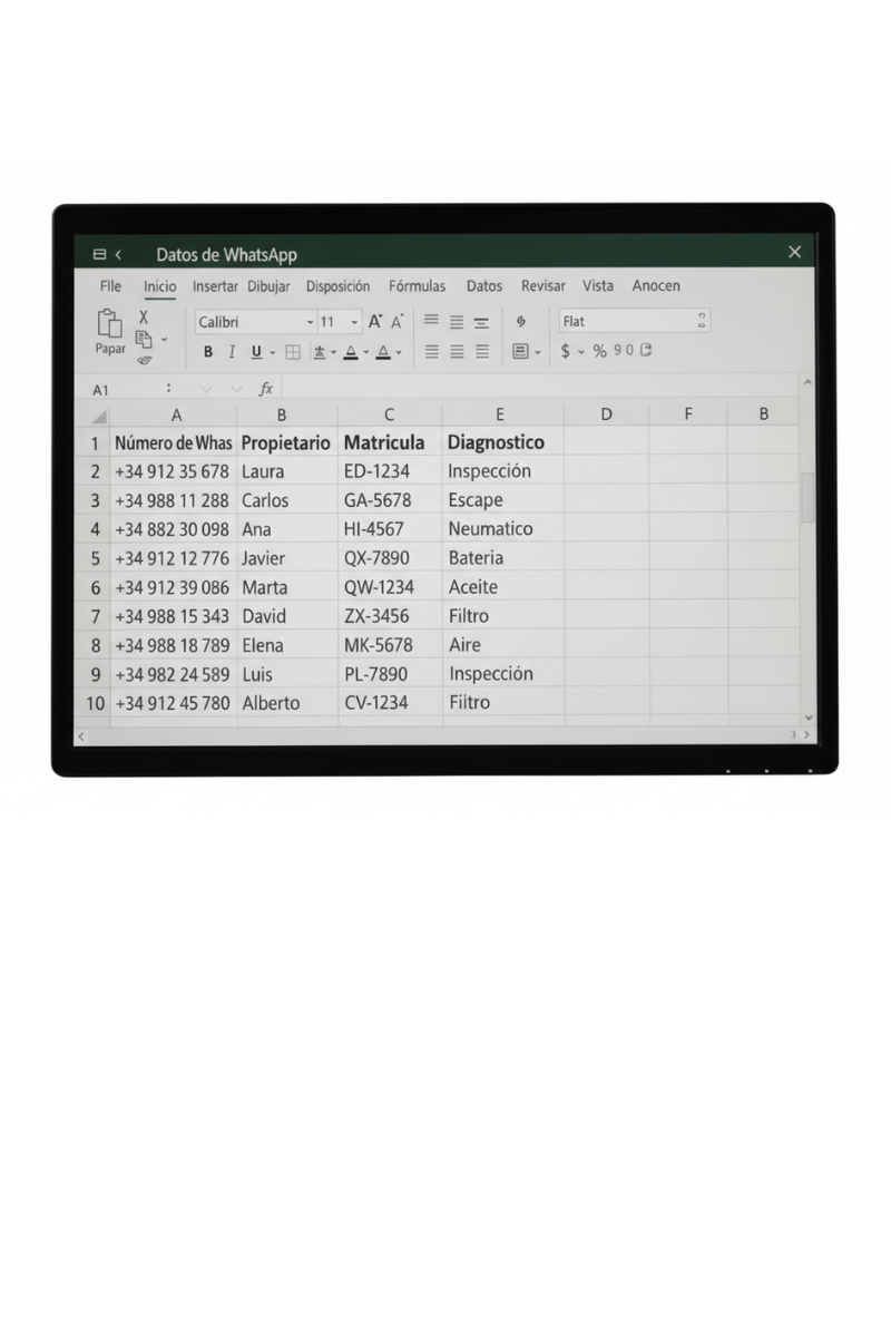 Solo tienes que añadir el número de WhatsApp de tu cliente en una columna de tu Excel. KonectarIA se encarga automáticamente de gestionar la información, responder consultas y mantener a cada cliente informado de forma segura y personalizada.